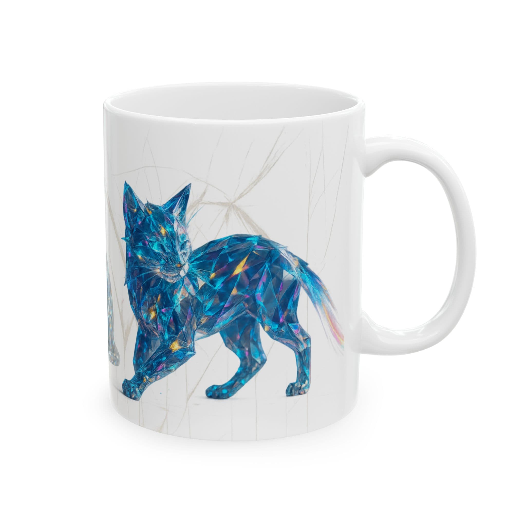 cat mug, crystal cat art, prism cat design, refraction cat mug, cat lover gift, unique cat mug, art coffee cup, glass cat art, 11oz mug
